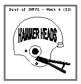 ![]() Week 6 finds one undefeated team and no winless teams. We still need to address the rules governing trades. At issue is the number of votes required to ratify a trade and whether a "No" vote should be used (by rule) to stop inequitable trades. Another thing came up this week. Apparently I have been using the wrong scoring table for QB's receiving TD's. I believe this has only come up twice in 13 years, but there it is. According to Jack Casey, the rules we inherited had the QB receiving TD's matching RB receiving TD's. This is minor but I would like to update this for net year. There is a Thursday game this week and next week. Also the Oakland and Dallas byes were re-arranged to because of baseball, so this week there are 5 teams off. In case you lost it, the league's url is http://swffl.50megs.com, drop by, take a look at the archive. These notes are also available via e-mail if you have an e-mail account. The E-Mail notes get out sooner, get delivered faster and you avoid the dreaded stamp fee. Key Match-Ups to Watch this Week. Norm was 3/5 this week making him 8/15 (53%) on the season and he gains top billing. Spock was 1/5 this week making him 6/15 (40%) on the year and his locks appear below: BR -4 MT(102) BB -5 QS (99) There were 4 games that were over by Sunday night. The other 2 were still in doubt. The Black & Blue Attack pulled out the victory over the M. Takers on Sunday night as Manning and the RAIDERS overcame an early M. Taker lead. This game featured classic QB vs. WR matchup. The Takers Garcia put up the points but all of his TD passes went to the Black & Blue's Owens. If one of those 9 point TD's ends up with Stokes instead of Owens, we'd have a massive traffic jam in the standings at 3-2. |