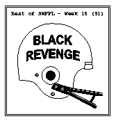 ![]() Playing catch up on notes so all I have here is the standard stats and a promise that Week 16 should be back to normal. I also include a hearty (if late) Merry Christmas from the Commissioner's office. By the way "GOW" honors go to the game between the Good Fellas and Black & Blue Attack. This one looked like the Attack would win it in a tiebreak procedure but the RAVENS Defense scored with less than 30 seconds left, Stover kicked the PAT and put the Fellas in the "W" column by 1. Don't forget the web-exclusive "Weekly Previews" and "Free Agents List" when making those starting lineup changes or making that acquisition that puts you over the top. If you have an idea for something new, let me know and we'll see if I can add it. If you need me to mail the Notes, give me a call, I think we can avoid the postage, one way or another, if not I will mail you a copy of the notes. It is cheaper and also much quicker to go electronic. The league's url is http://swffl.50megs.com . |