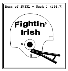 ![]() Week 4 finds just ne undefeated team and every team with at least one win. The waiver wire has calmed down a bit, although it needed a breather after those first few weeks. We sort of had our first min-super bowl this week as the remaining undefeated teams, and much like the last few Super Bowls, the game lived up to the hype. See more about that in the Game of the Week section. The old web (http://swffl.50megs.com) has updated archives and historical records. I will also add some web-exclusive. Send any ideas to me and I will see what I can do. Key Matchups to watch this Week The Bishops of Battle will try to keep pace with the top teams against the Black & Blue Attack this week. The Money Takers will try to keep their record perfect as they take on the down on their luck Good Fellas. The Roxborough Wranglers will try to climb back above the .500 line against the Fightin' Irish this week. In a battle of Money Teams, the Body Shop will meet the Jelly Beans. The Dream Team and the Young Gunz will meet in a battle of the last 2 champions. Spock was 3 of 5 last week making him 6/10 (60%). He retains top billing. Norm (my estimates) was 2 of 5 last week making him 5/10 (50%). His lines (my estimates) appear below: BI -2 BB (268) JB -1 BS (273)GF -1 MT (271) DT -9 YG (283) FI -2 RW (272) Monday night was just chock full of Monday night madness as every team in the league had at least one starter going. That being some of the trailing teams had a bit more of chance than others. The Bishops of Battle and Thomas carried a 46.6 point lead in to Monday night against the defending champion Dream Team and Sanders. Sanders out-performed Thomas but not by that much. The Bishops were led by Matty Ice, Bernard, Gurley and Shepard. The Dream Team was led by Woods in the loss. A Goff and Ridley start might have had the 2 teams swapping standings points. The Roxborough Wranglers, Watkins and a 45.5 point lead proved to be too much for the Good Fellas and Kelce on Monday night. Kelce cut the deficit by almost one half but came up short and Watkins was in street clothing. The Wranglers were led by Cousins and Davis as they climbed back to the .500 line. Kelce was joined by a revived TB12 to lead the Good Fellas. The Fellas had very little help on the bench. |